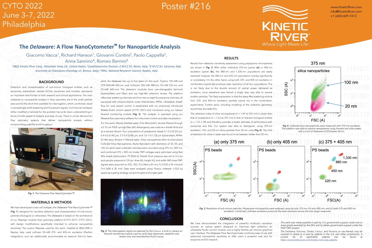 “The Delaware: A Flow NanoCytometer™ for Nanoparticle Analysis” Poster presented at CYTO 2022 (June 2022) Download PDF →